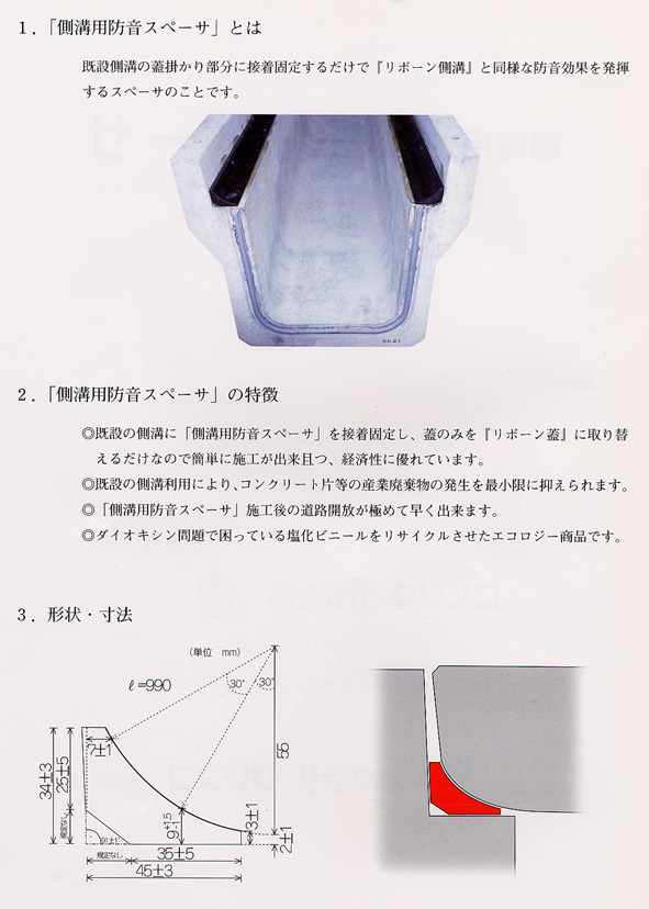 リボーン側溝蓋使用 防音スペーサ